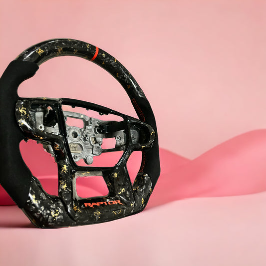 Volante de fibra de carbono y cuero perforado personalizado para Ford Raptor F150 (2015-2024)
